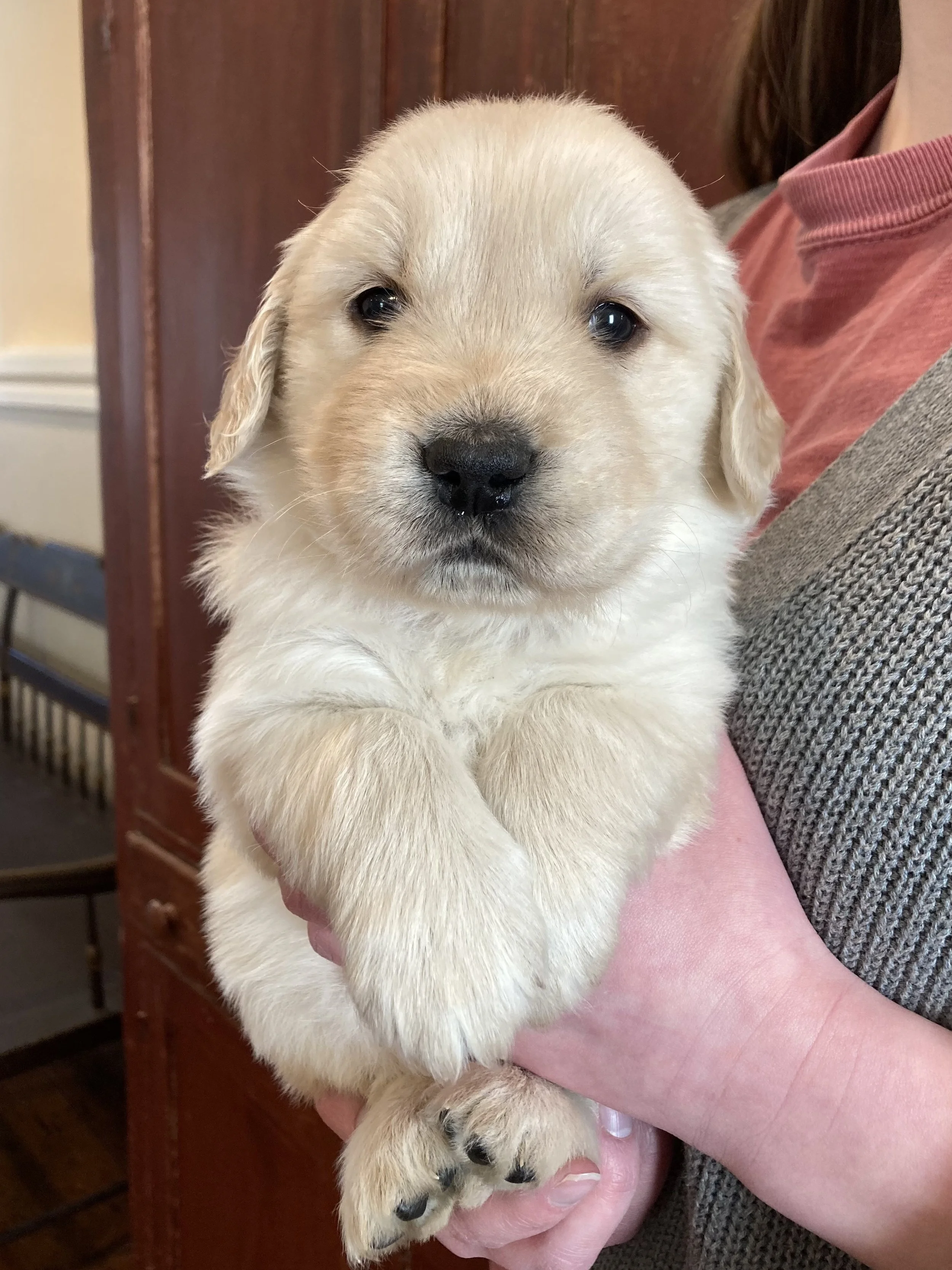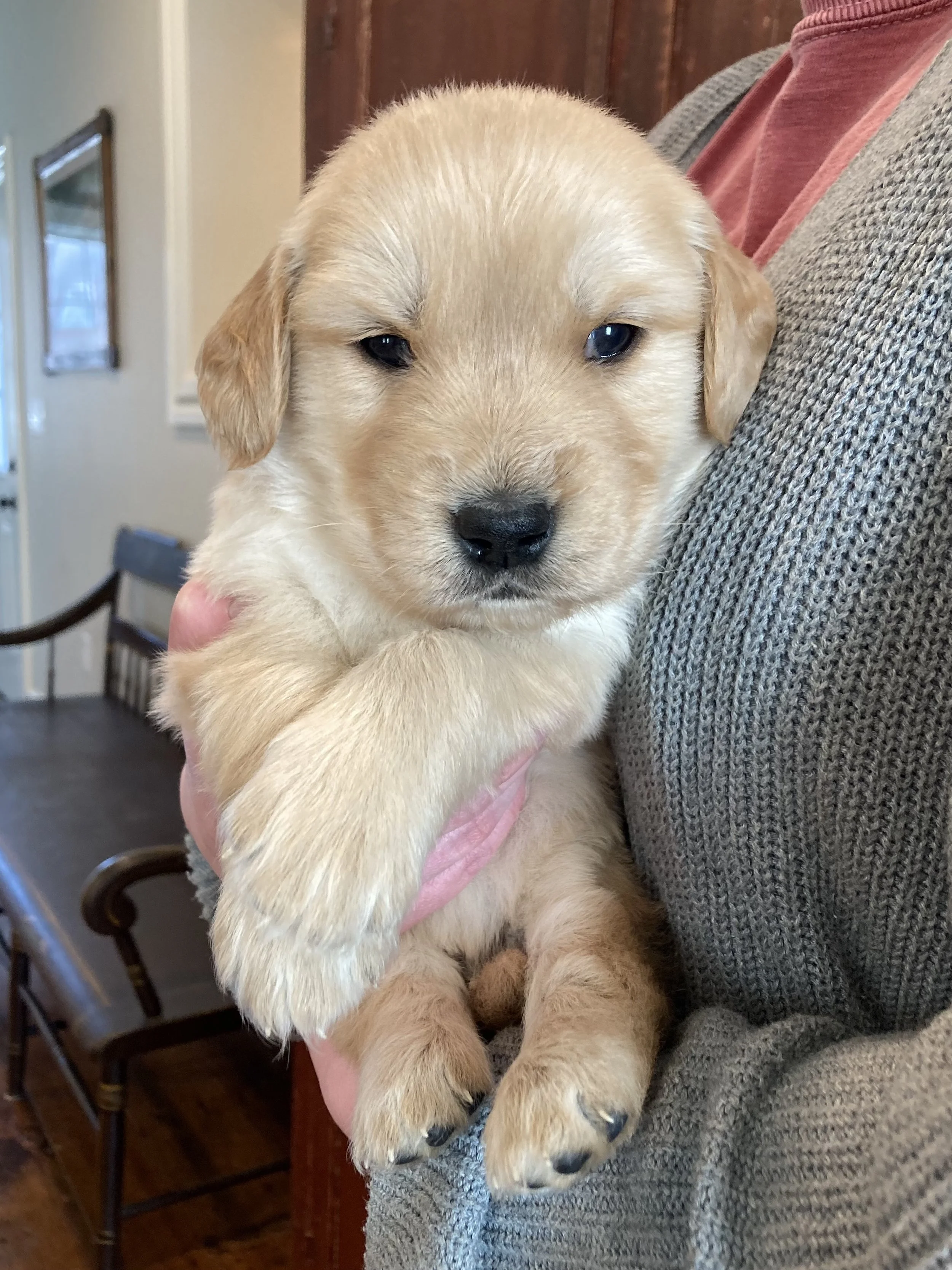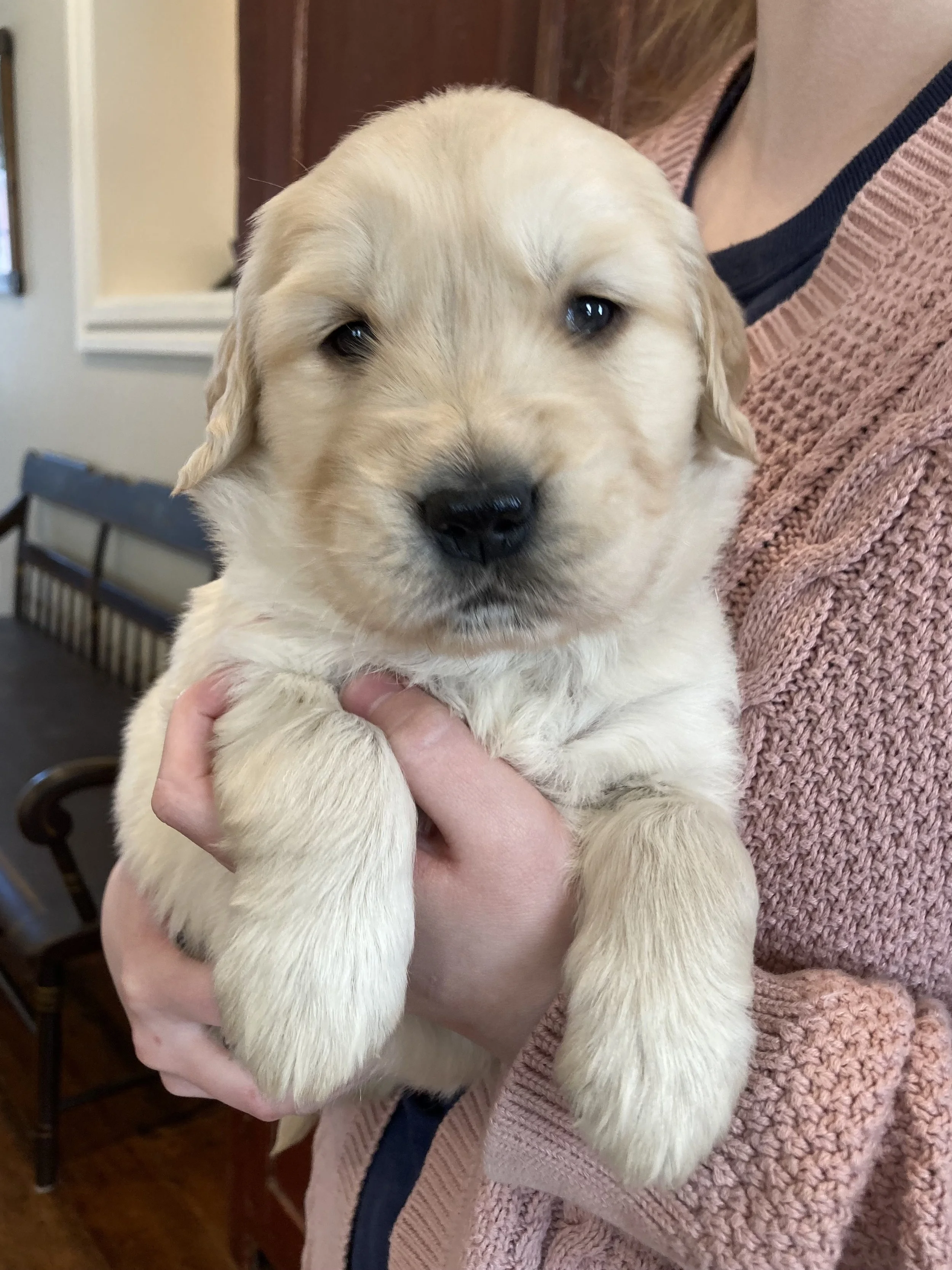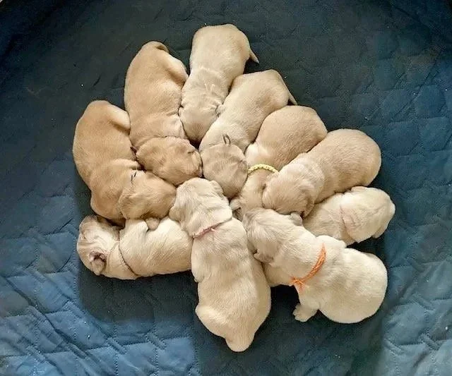 Pictured below are Lucy’s puppies born on January 16, 2026! She delivered five male puppies and five female puppies, and they are adorable and doing great. They are now five weeks old and will be ready to go home in just three weeks. Six of them are already spoken for, but there are still four of our girl puppies available. If you are interested in getting a puppy or have any questions, please contact us!