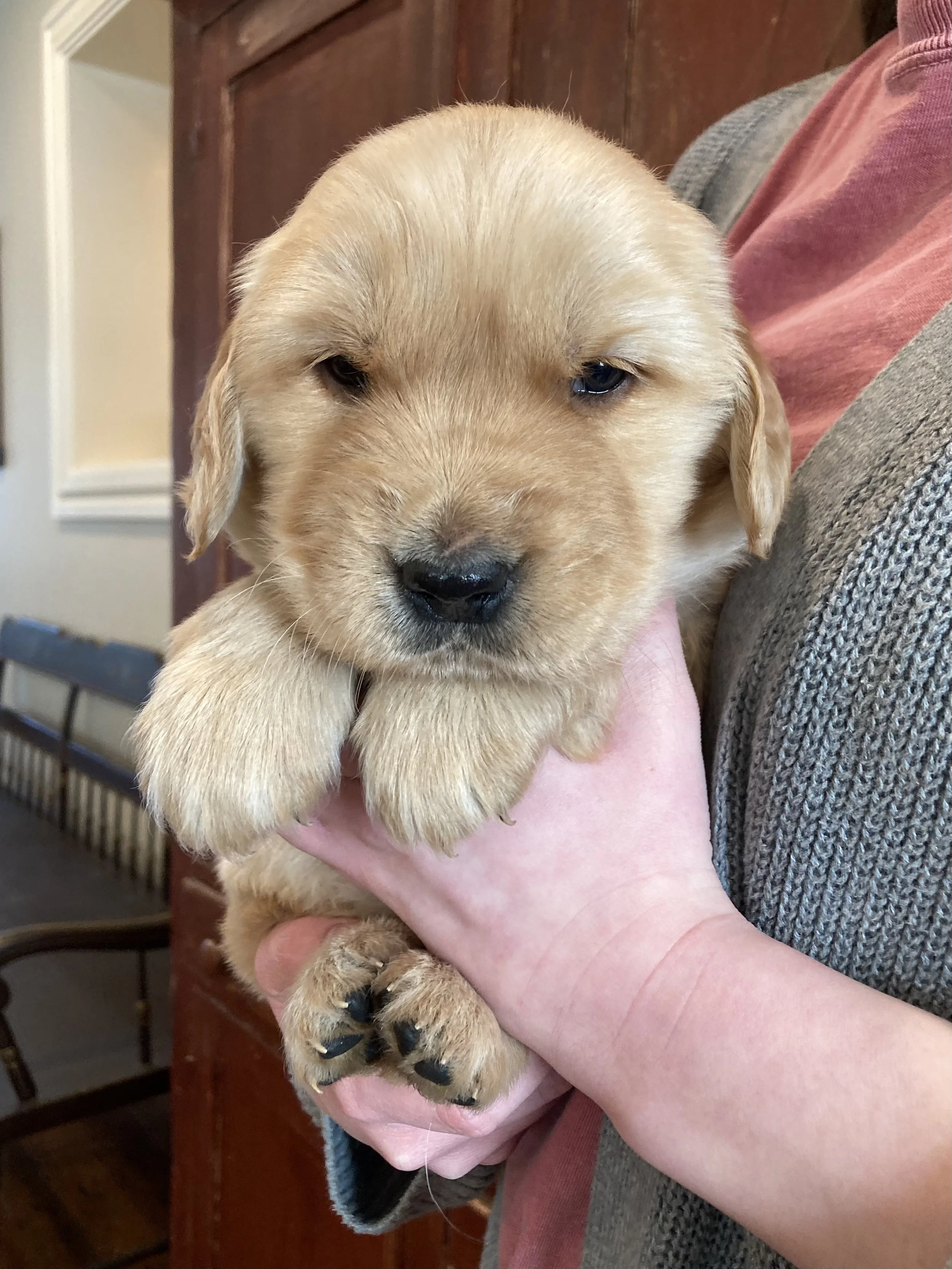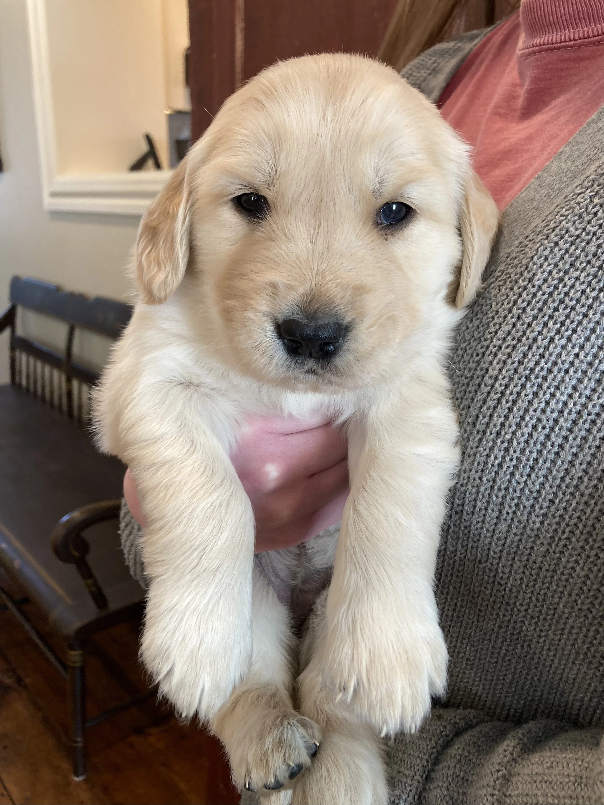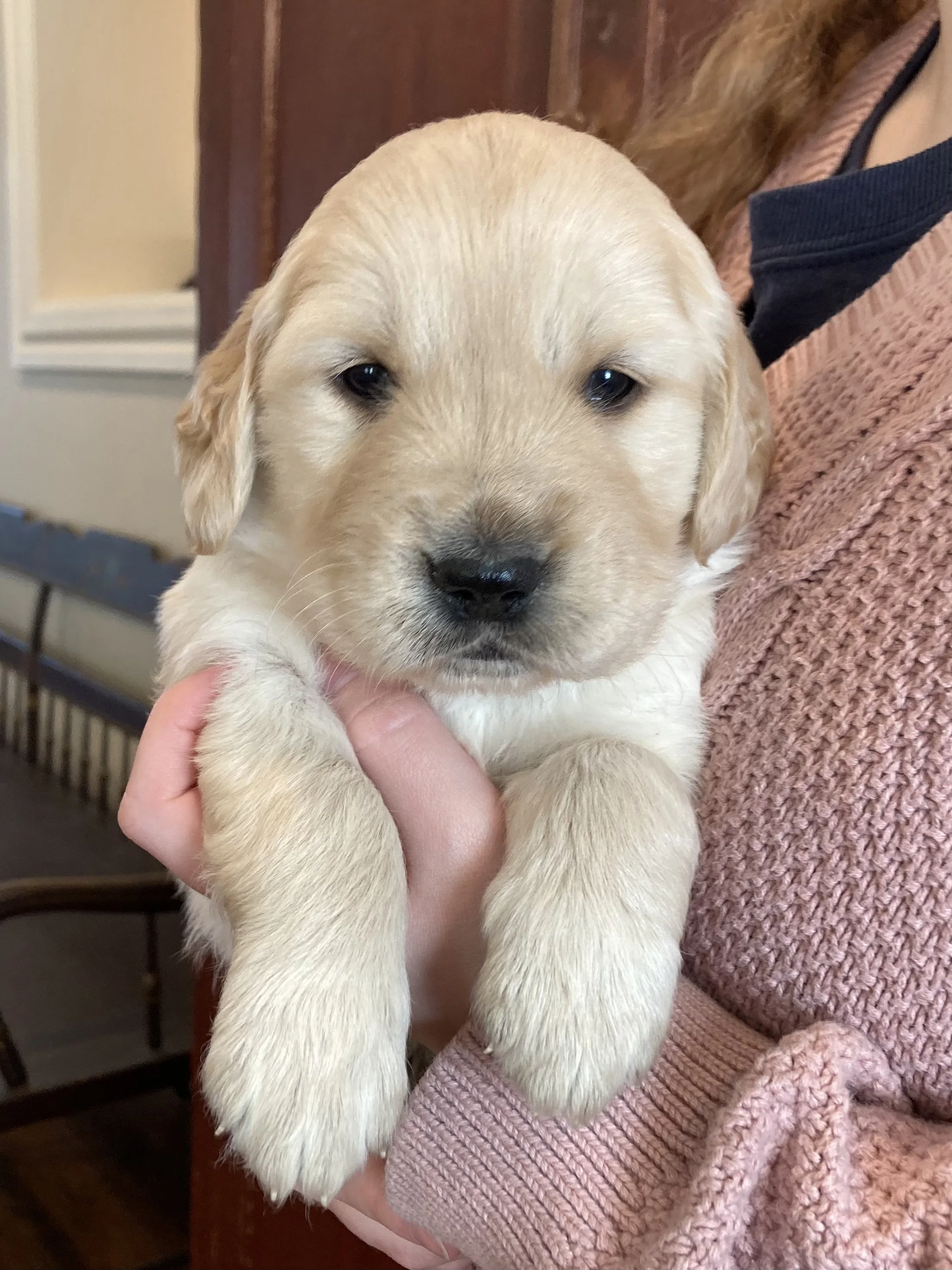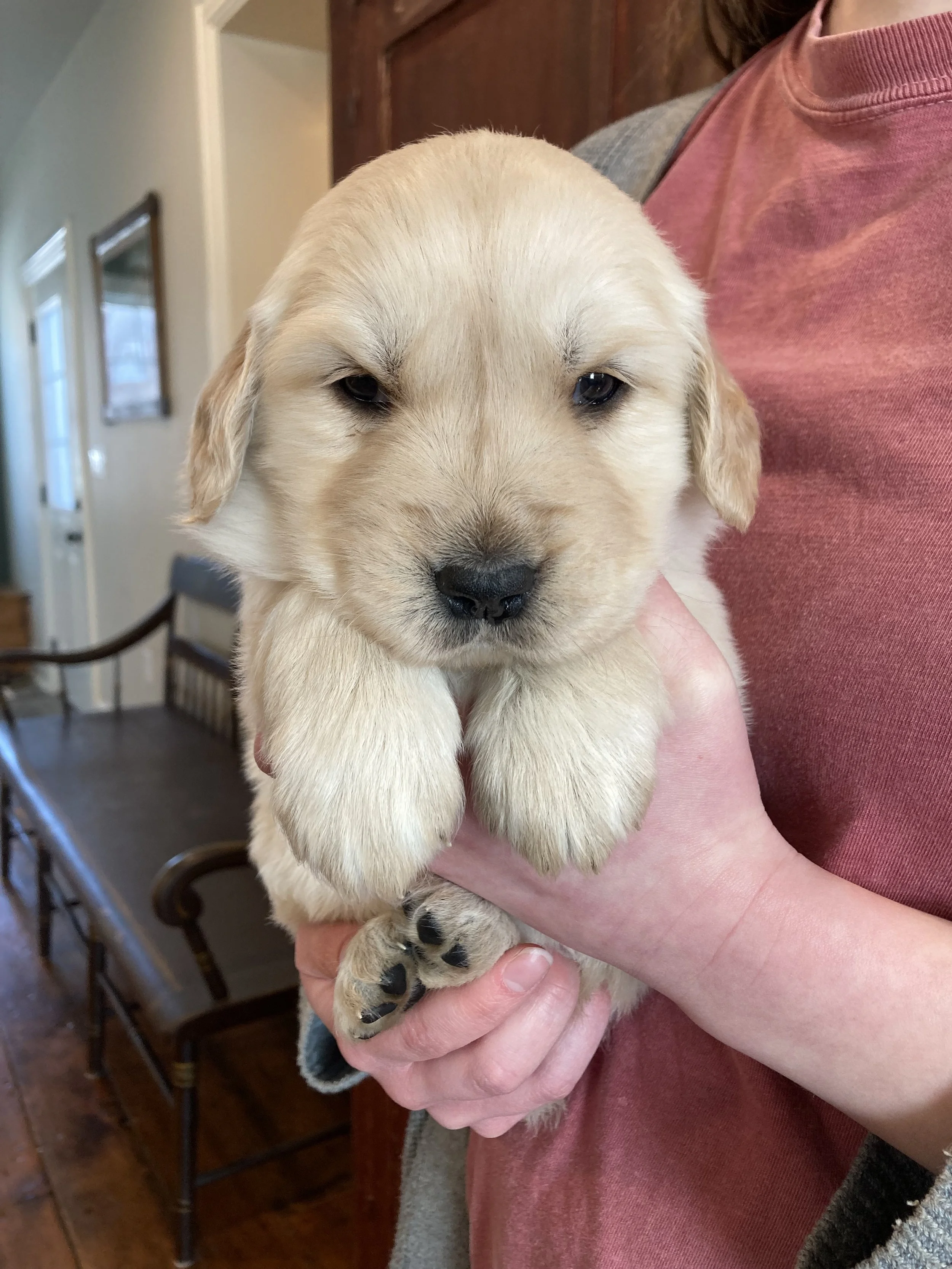 Pictured below are Lucy’s puppies born on January 16, 2026! She delivered five male puppies and five female puppies, and they are adorable and doing great. They are now five weeks old and will be ready to go home in just three weeks. Six of them are already spoken for, but there are still four of our girl puppies available. If you are interested in getting a puppy or have any questions, please contact us!